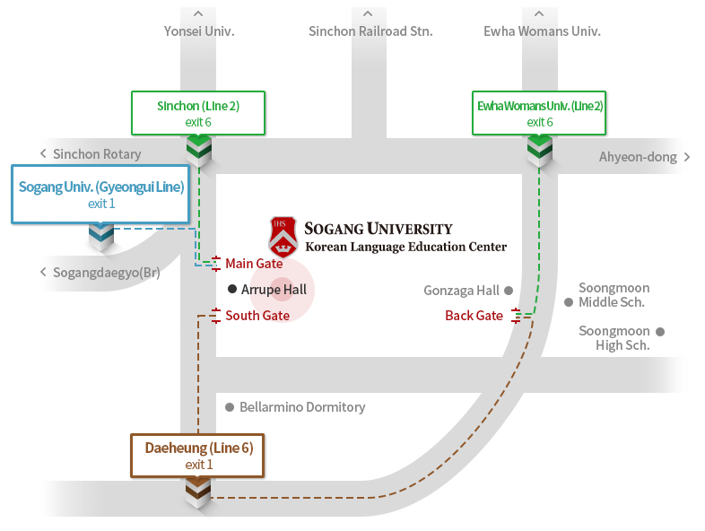Take 6002 (Bus number) at the platform 12A or 5B (both are placed in arrival floor). Get off at the Sinchon Hyundai Department Store. (It takes about 80 min. to Hyundai Department store, but could be extended by traffic jam) |